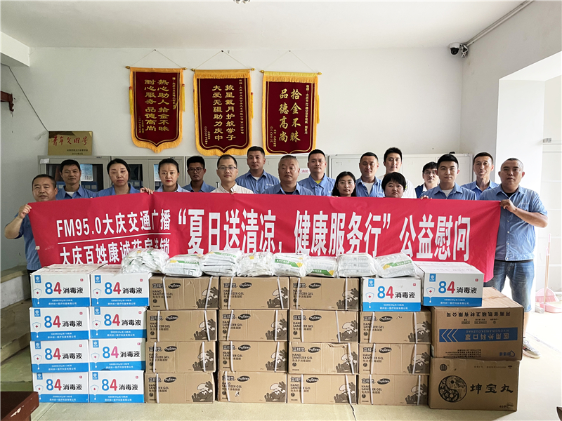 2021年7月百姓康誠(chéng)藥房攜手FM95.0大慶交通廣播“夏日送清涼,健康服務(wù)行”公益慰問第二站,向大慶公交公司捐贈(zèng)84消毒液、醫(yī)用外科口罩、免洗消毒凝膠、夏日避暑藥品等物資。